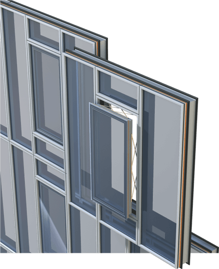 M65 is a unitized (element) curtain wall system ideal for high-rise buildings and freedom in architectural design.